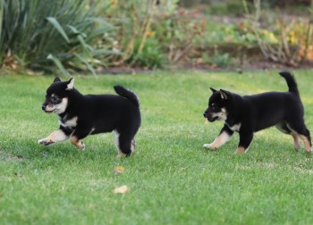 Fenečka z našeho chovu Hoshiko, se k nám na chvíli vrátila. Panička se rozhodla, že jí dopřeje štěňátka a jako tatínka pro její štěňátka zvolila našeho Yoriho. Hoshiko k nám přijela, pár dní pobyla, s Yorim se seznámila a za 2 měsíce 28.8.2019 se jí narodila štěňátka. Dvě krásné černé fenečky s pálením. Jejich porodní váha byla 220 g. a 235 g., za týden vážili 557 g. a 570 g. Dostali jména L'Aya a L'Oki.
